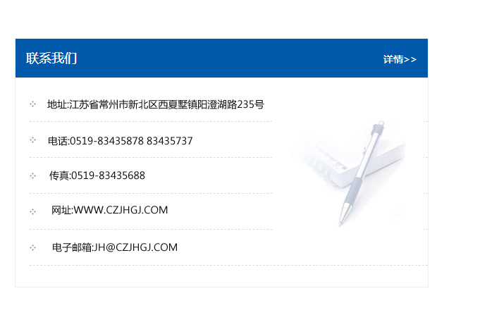 地址:常州市新北區友邦商務大廈1幢16、17層  電話:0519-85101652  傳真:0519-85112595  郵編:213022  網址:www_cz-jiayue_cn.chinakudu.com  郵箱:xiajifengaa@163.com